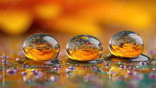 water, droplet, macro, closeup, liquid, surface, abstract, nature, orange, yellow, clear, shiny, transparent, sphere, round, glossy, fresh, clean, dew, morning, glasses, detail, dripped, colours, light, artistic, vibrant, texture, bubble, design, element, pattern, beauty, still, life, calm, dreamy, zen, balance, smooth, fluid, purity, micro, tiny, minimal, simple, harmony, bright