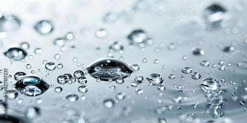 water drops on white background, banner,dew or dripping rain droplets,cool surface on glass