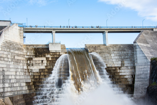 dam, water, power, river, hydroelectric, hydro, bridge, electricity, energy, station, lake, nature, concrete, architecture, reservoir, sky, construction, industry, engineering, structure, blue, fall, flood, weir