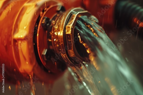Water hose pouring water, ideal for use in gardening or home maintenance projects