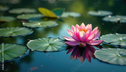Water lilies form a natural floral pattern on a still lake, pond, pink, peaceful