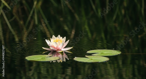 Water Lily Blooming Peacefully on Pond Surface with Reflections