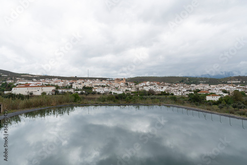 water reservoir next to a city