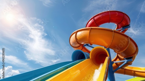 water slide structure in a sunny sky, perfect for summer fun and adventure in a water park setting.