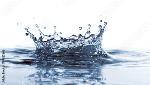 splash, water, crown, ripple, droplet, liquid, dynamic, burst, impact, clean, pure, fresh, clear, transparent, fluid, texture, motion, detail, surface, energy, circle, centered, isolated, white, background, still, photographic, high-quality, macro, closeup, sparkling, bubbly, radiating, freshness, hydratation, vitality, health, nature, element, substance, science, hydro, water, refreshing, cool, cleanliness