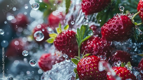 Water splash with fresh strawberries.