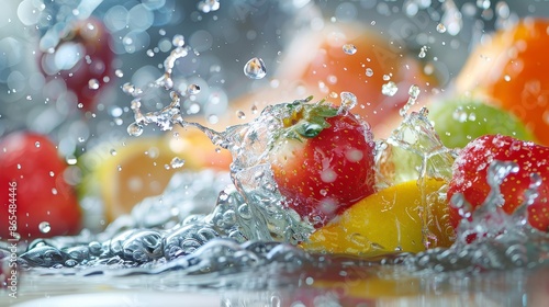water, splash, fruit, fresh, red, orange, yellow, green, strawberry, citrous, splashing, juicy, vibrant, delicious, healthy, vitamin, wet, droplet, bubble, background, blur, closeup, macro, photo, food, drink, lifestyle, nature, organic, natural, summer, tropical, bright, colourful, refreshing, texture, pattern, still life, composition, abstract, beautiful, tasty