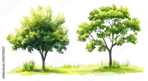 Watercolor abstract tree side view isolated on white background for landscape plans, architecture layout drawings, elements for the environment and garden, blossom grass, blossoming flowers