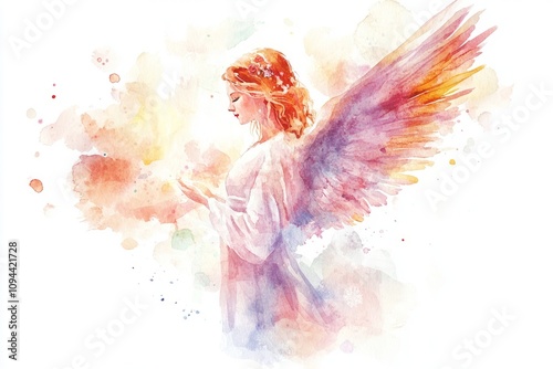 watercolor, angel, christmas, card, white, background, pastel, colours, clip art, festive, art, illustration, soft, aethereal, serenity, holiday, design, wing, halo, delicate, peaceful, light, texture, celebration, spirit, traditional, subtile, decorative, greeting, minimalist, hand-painted, snow, elegance, sacred, inspiration, heavenly, cheerful, christian, winter, joyful, ornament, prayer, grace, vintage, calm, whimsical, blessing