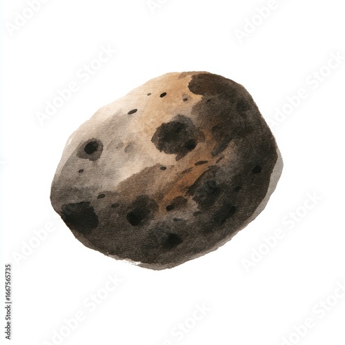 asteroid, meteorite, space, rock, watercolor, painting, illustration, cosmic, celestial, brown, tan, dark, irregular, shape, mottled, texture, laundered, isolated, white, background, astronomy, science, art, artwork, universe, geology, stone, mineral, natural, object, design, element, image, graphic, artistic, creative, abstract, nature, scientific
