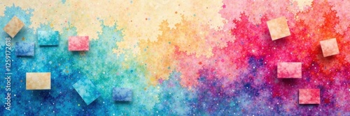 Watercolor background with colorful business cards scattered on it, corporate, business cards, colorful