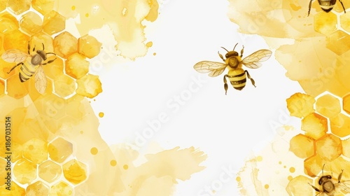 bee, honeycomb, watercolor, honey, insect, apiary, nature, illustration, hive, pollination, wildlife, apiculture, art, yellow, hexagon, flora, organic, eco, environment, food, sweetness, winged, pollen, tied-up, work, honey bee, colony, painting, natural, garden, floral, sweet, health, nourishment, texture, background