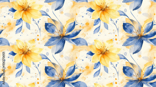 watercolor, beige, pattern, yellow, blue, flower, playful, doodle, element, fabric, wrapping, paper, design, artistic, floral, whimsical, vibrant, texture, soft, contemporary, seasonal, decorative, abstract, print, no people