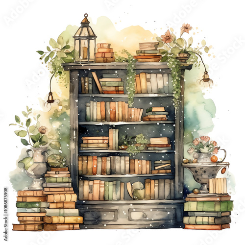 library, book, paper, education, watercolor, literature, school, stack, illustration, vintage, old, page, reading, university, collection, design, background, bookshop, cover, read, textbook, antique, bookshelf, college, document, cognition, learning, open, print, study, wisdom, isolated, text, object, archive, bible, expertise, graphic, homework, information, learn, parchment, science, shelf, studying, plant