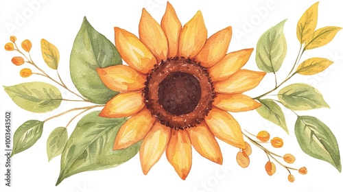watercolor, clip art, single, sunflower, isolate, white, background, plant, flower, illustration, floral, template, wedding, summer, nature, artwork, vibrant, decor, softness, beauty, yellow, texture, garden