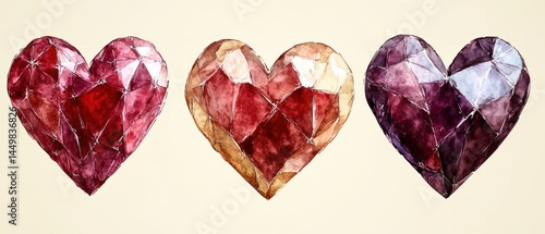 nubes, crystal, watercolor, love, valentine, day, gem, romance, facet, gem, polygon, shape, red, pink, purple, gold, affection, gift, card, precious, art, artistic, hand-made, pattern, design, elegant, drawing, romantic, symbol, sweet, graphic, abstract, decoration, isolated, background, creativity, unique