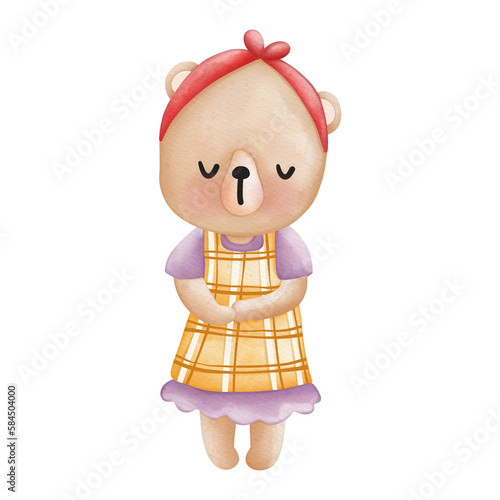 watercolor Cute cartoon mama bear maid, Mother bear animal concept