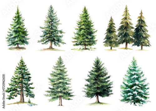 Watercolor evergreen tree illustrations