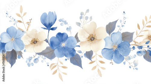 Watercolor Floral Clipart Featuring Blue and Cream Flowers With Delicate Greenery