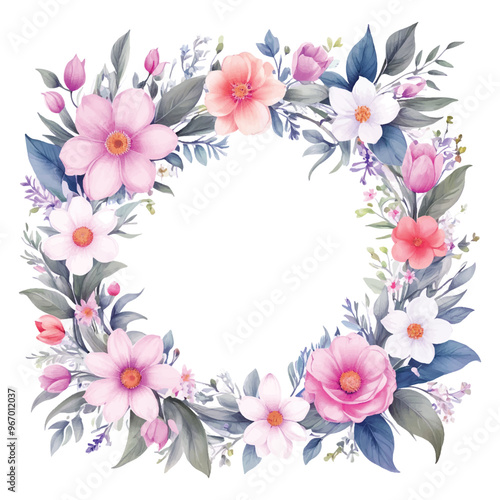 flower, frame, floral, pink, border, flower, illustration, nature, card, spring, design, vector, art, decoration, leaf, blossom, summer, plant, pattern, ornament, circle, daisy, beauty, valentine, colours
