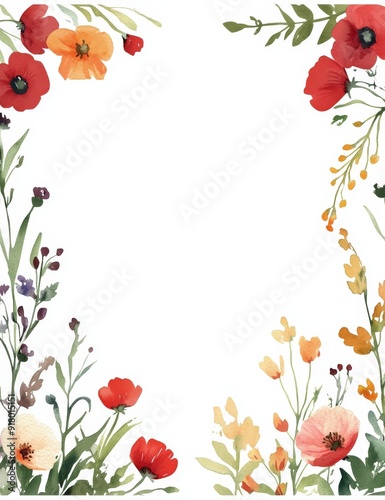Watercolor Floral Frame with White Background for Spring or Summer Designs Generative AI