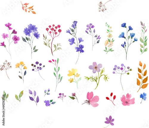 Watercolor floral set. Hand drwing illustration isolated on white background. Vector EPS.