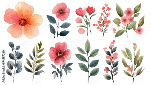 Watercolor Flower, Leaf, and Plant Set - Beautiful Botanical Illustrations for Creative Projects, Design, and Decoration