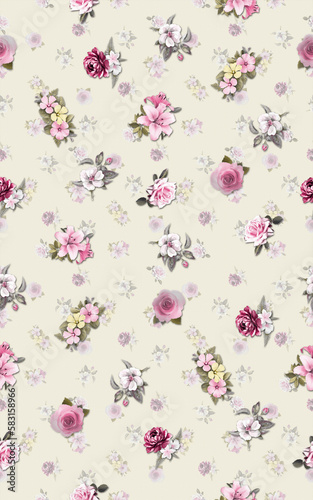 Watercolor flower with cream color ground textile and digital print seamless pattern