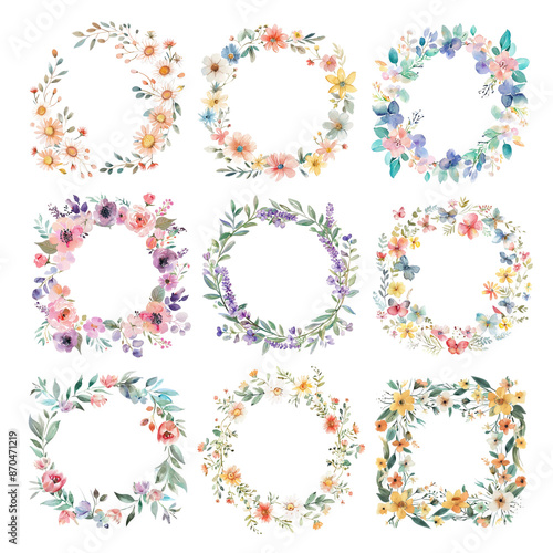 Watercolor flower wreath png cut out set