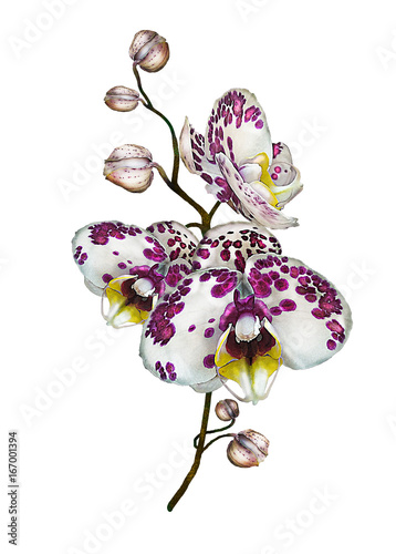watercolor flowers - orchid. card with floral illustration. isolated on white background. buds. Exotic composition for invitation