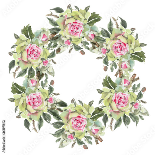 flower, rose, watercolor, chaplet, round, frame, romantic, blossom, floral, illustration, background, summer, nature, beautiful, drawing, spring, card, design, art, vintage, beauty, isolated, wedding, greeting, decoration, plant, leaf, bloom, invitation, red, valentine, garden, bouquet, painting, image, element, decorative, natural, blooming, postcard, tree branch, style, bud, congratulation, elegance