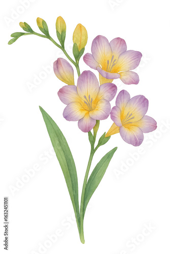 Watercolor Freesia Flower on transparent background. Plant, floral