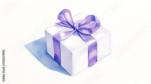 Watercolor Gift Box with Purple Ribbon