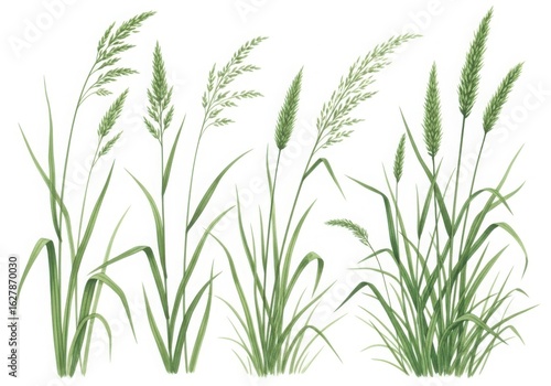 Watercolor grass isolated on white background creates a natural botanical illustration