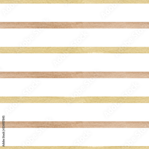 Watercolor hand drawn seamless pattern with abstract stripes in beige and brown color isolated on white background. Good for textile, background, wrapping paper etc.