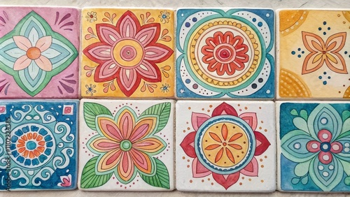 Watercolor Hand Painted Tiles with Floral Patterns, Tile Art, Tile Design