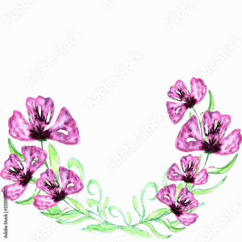 watercolor hand-drawn floral element frame. Can be used as a decorative element for greeting card, wedding invitation, posters, banners, prints.