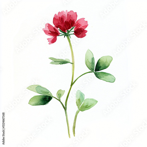 Watercolor hand-painted Red Clover branch with leaf painting illustration isolated on a white background, illustration, AI painting design, AI