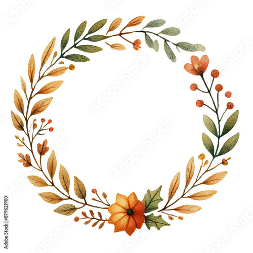 watercolor, illustration, leaf, flower, art, hand-drawn, graphic, design, creative, isolated, clip art, festive, fall, rustic, nature, botanical, decorative, home decor, floral, cosy, chaplet, farm fresh