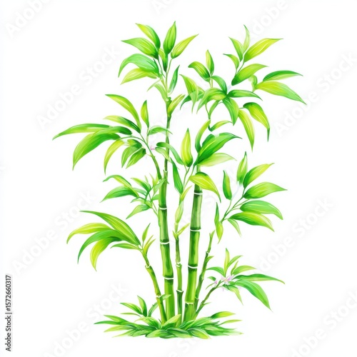 Watercolor Illustration of Bamboo Stalks and Leaves on a White Background