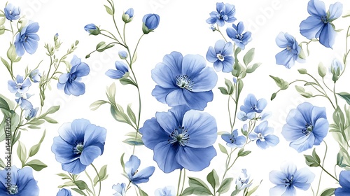 watercolor, illustration, blue flower, delphinium, green leaf, botanical, nature, artistic, decorative, design, pattern, background, greeting card, invitation, home decor, spring, summer, elegance, beauty, delicate, creativity, floral arrangement, garden, blooming, flower petals, foliage