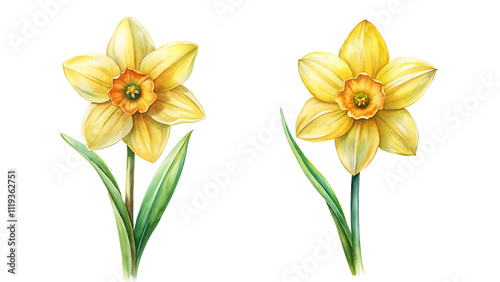 watercolor illustration of daffodil flower isolated on transparent background