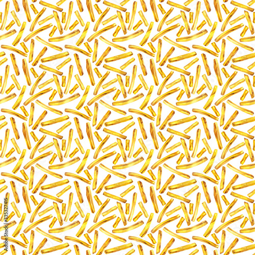 Watercolor illustration of fast food french fries in yellow ink pattern