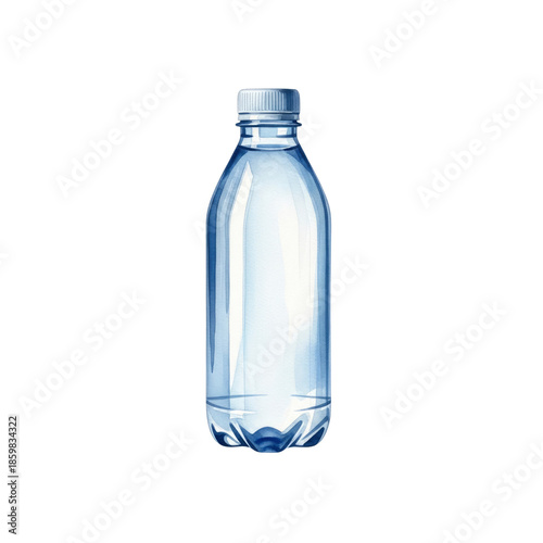 water bottle, watercolor, illustration, plastic, drink, liquid, refreshment, clear, transparent, still life, isolated
