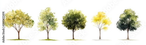 watercolor, illustration, tree, nature, seasonal, green, yellow, autumn, spring, summer, foliage, deciduous, evergreen, canopy, trunk, branch, landscape, design, art, graphic, image, vibrant, colourful, growth, change, season, environment, plant, biology, garden, park, urban, rural, detail, high-coloured, artistic, botanical, natural, isolated, white