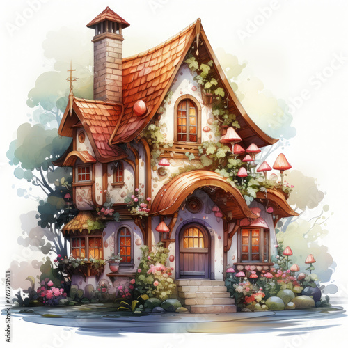 watercolor Kawaii Gingerbread House clipart, Generative Ai
