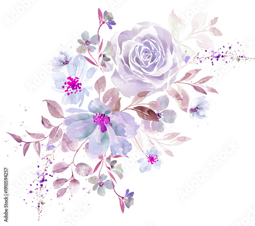 lilac, gentle, tender, graceful, elegant, flower, arrangement, watercolor, spring, summer, floral, decor, decorative, botanical, wedding, illustration, leaf, hand-drawn, drawing, tree branch, bloom