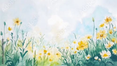 Watercolor Meadow Yellow Wildflowers Green Grass