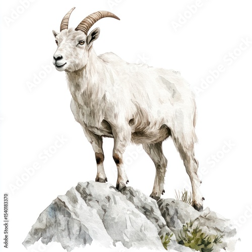 Watercolor Mountain Goat on Rocks