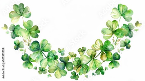 watercolor, painted, st, patrick, day, decoration, clover, chaplet, ring, shamrock, background, icon, abstract, flower, logotype, summer, banner, nature, vintage, art, spring, party, leaf, forest, floral, garden
